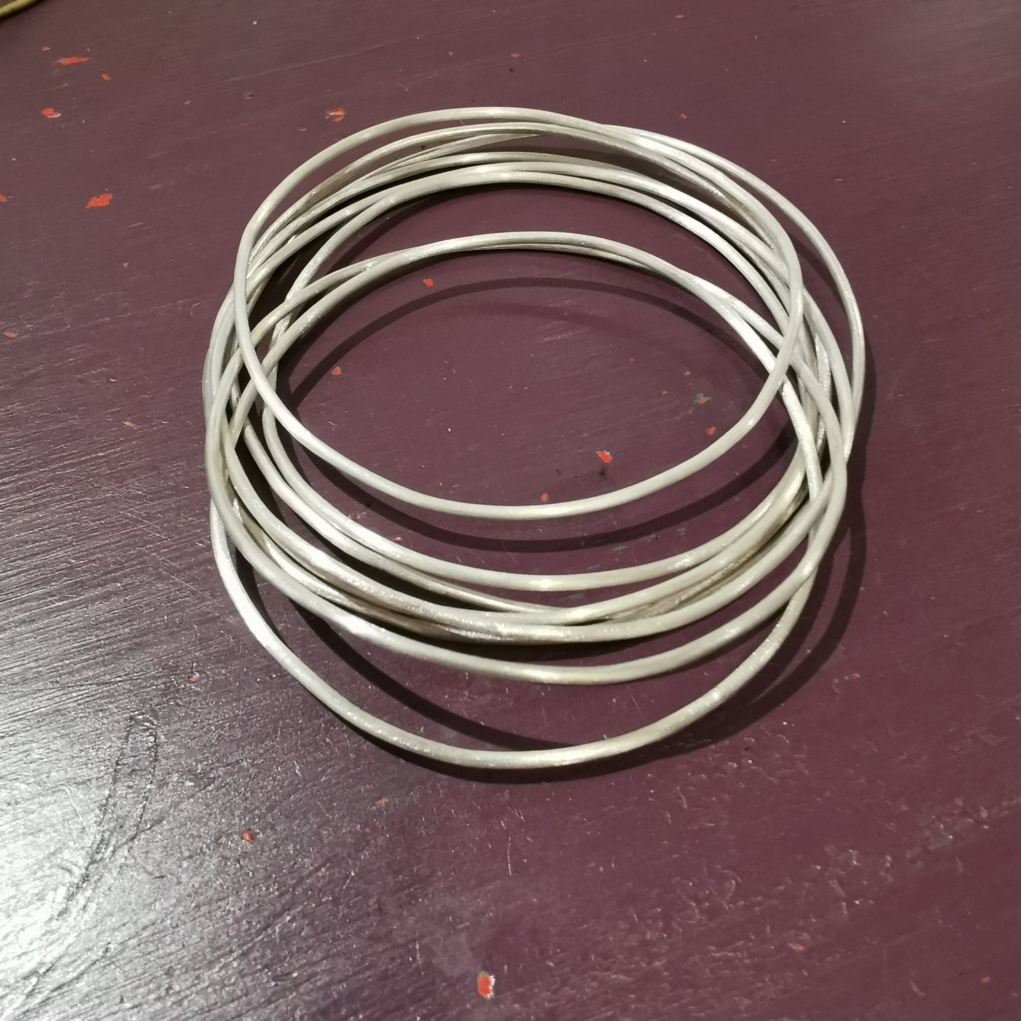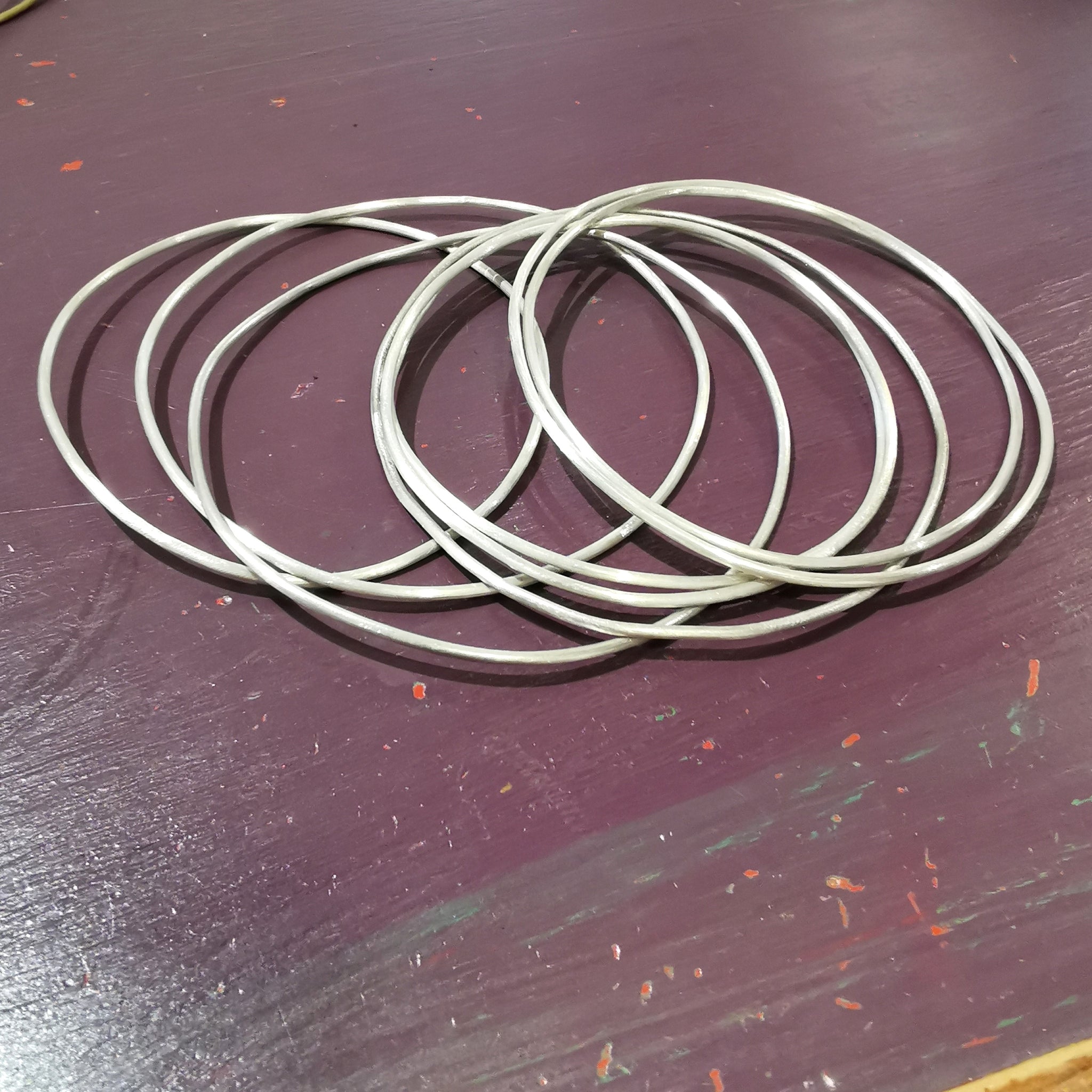 Bracciale in argento, filo a forma di cerchio, la misura è data dal cerchio più o meno grande, l'andamento del bracciale è irregolare in modo da creare movimento quando i pezzi sono più di uno.