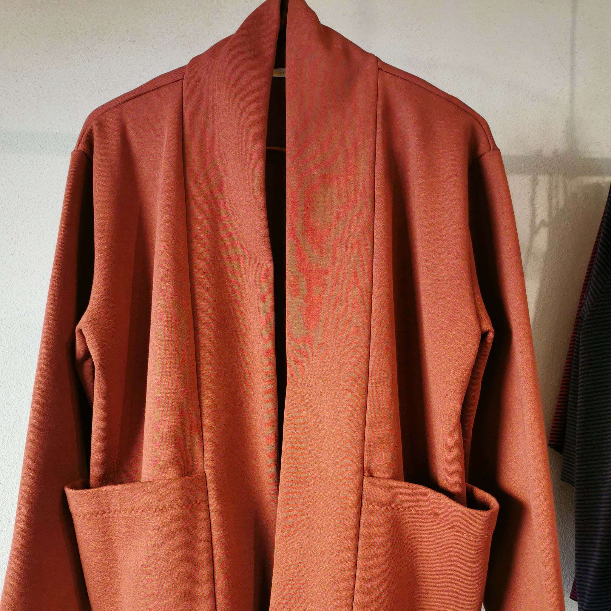 Cardigan lungo con 2 tasche davanti, la manica è lunga, morbido e comodo, cade bene grazie alla larga fascia sull'apertura davanti, veste donne di forme molto diverse. I tessuti sono tutti in calda felpa di cotone 100 %. La taglia é unica e veste fino alla 46, ma possono essere sviluppate taglie ulteriori.